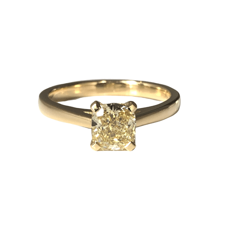 The cushion cut also known as the old mine cut or the pillow cut offers high brilliance and a vintage style. This gorgeous and elegant engagement ring has a 173 carat cushion cut diamond center stone certified at h in color and vs2 in clarity enhanced excellent cut polish and symmetry and is set in a classy 14k yellow gold razor thin setting. Finding that right engagement ring for your loved one can be a tough ask.