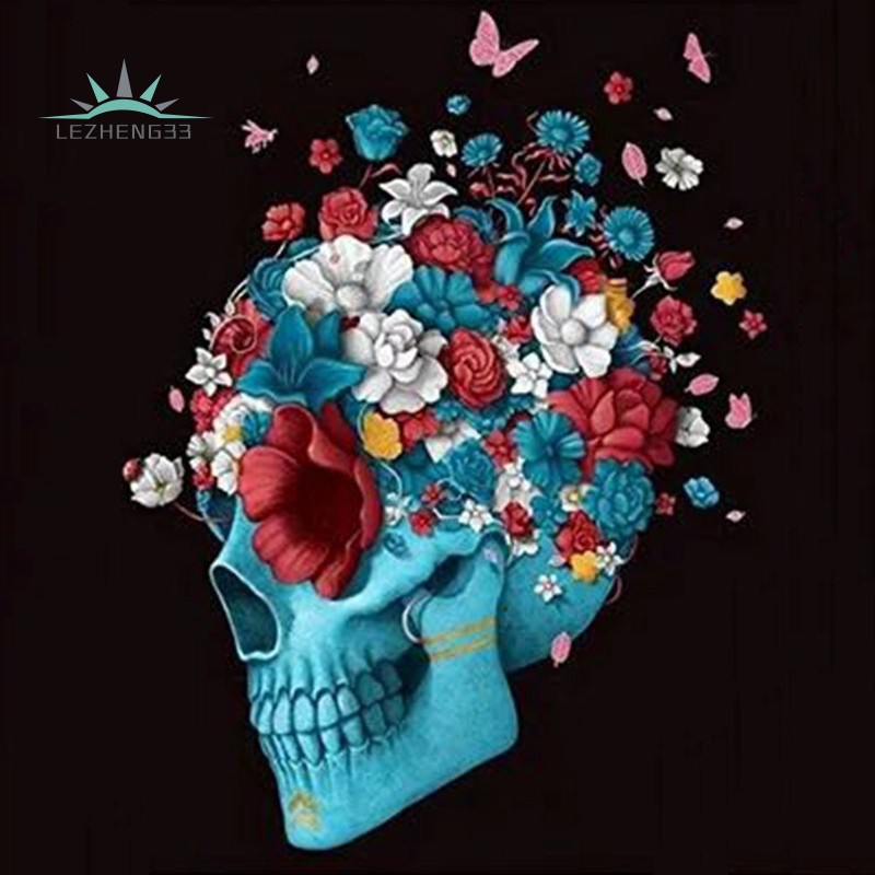 Flower Skull Heads Diamond Painting Full Round Diamond Dotz Wall Art Canvas Paint Halloween Wall Paper Diamond Drawing Stickers Aliexpress Blue Diamond Background