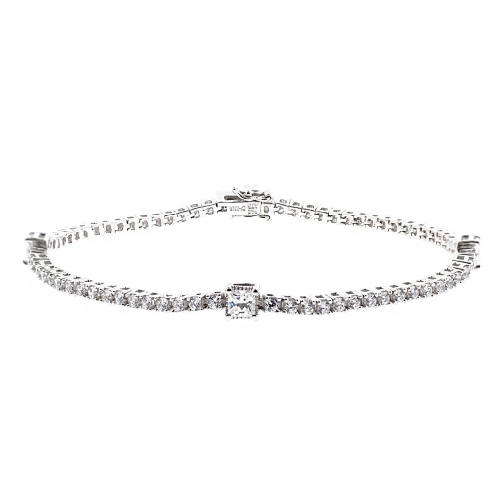 Brilliante Sterling Silver 7 Square Cut Simulated Diamond Eternity Tennis Bracelet Bulldog Shopping Network Emerald Cut Diamond Ring On Hand